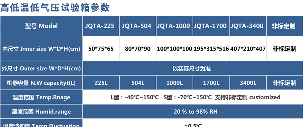 產(chǎn)品型號:JQTA-504 品牌:劍 喬 用途:高低溫低氣壓試驗箱,簡稱低氣壓試驗機(jī)、低氣壓(高度)試驗箱、高低溫濕熱低氣壓試驗箱,適用于電工、電子產(chǎn)品及其他產(chǎn)品、零部件及材料進(jìn)行低氣壓試驗的環(huán)境試驗箱設(shè)備,可滿足電工咨詢熱線:13829135130