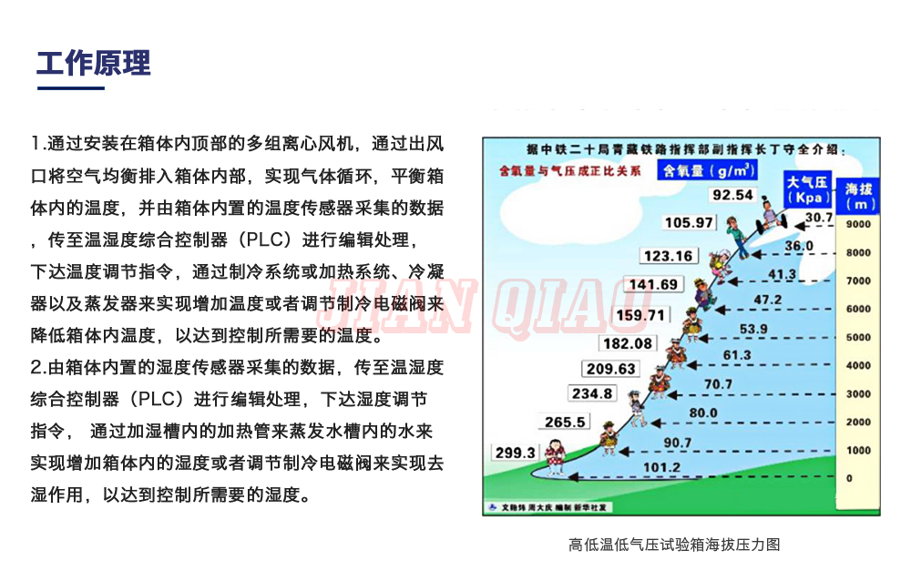 高低溫低氣壓試驗箱也稱為:低氣壓試驗機(jī)、低氣壓(高度)試驗箱、高低溫濕熱低氣壓試驗箱,適用于電工、電子產(chǎn)品及其他產(chǎn)品、零部件及材料進(jìn)行低氣壓試驗的環(huán)境試驗箱設(shè)備,可滿足電工電子產(chǎn)品及軍用裝備等環(huán)境試驗 - 高溫試驗、低溫試驗、溫度變化試驗、低氣壓試驗、溫度高度試驗、低溫/低氣壓綜合試驗、高溫/低氣壓綜合試驗,適用于電工、電子、儀器儀表及其它產(chǎn)品零部件及材料在高低溫交變環(huán)境下貯存、運(yùn)輸、使用時的適應(yīng)性試驗。