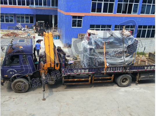 注:(圖為廣東劍喬引進(jìn)數(shù)控折彎機(jī)現(xiàn)場卸貨圖)