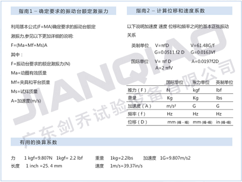 注:圖為振動試驗(yàn)臺選型換算公式