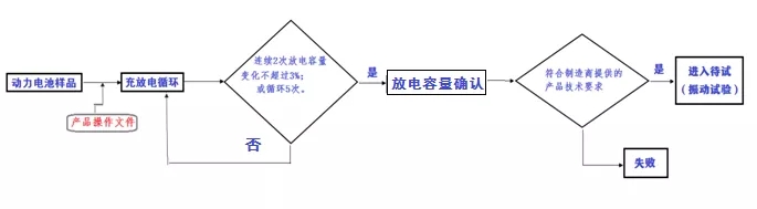 在振動(dòng)試驗(yàn)前,電池包或系統(tǒng)樣品需要先進(jìn)行預(yù)處理循環(huán),以確保在振動(dòng)試驗(yàn)時(shí)樣品的性能處于激活或穩(wěn)定的狀態(tài),在此提出,預(yù)處理失?。ㄈ珉姵厝萘窟_(dá)不到要求)的樣品是不能做振動(dòng)試驗(yàn)的,作為不合格樣品返還電池制造商。